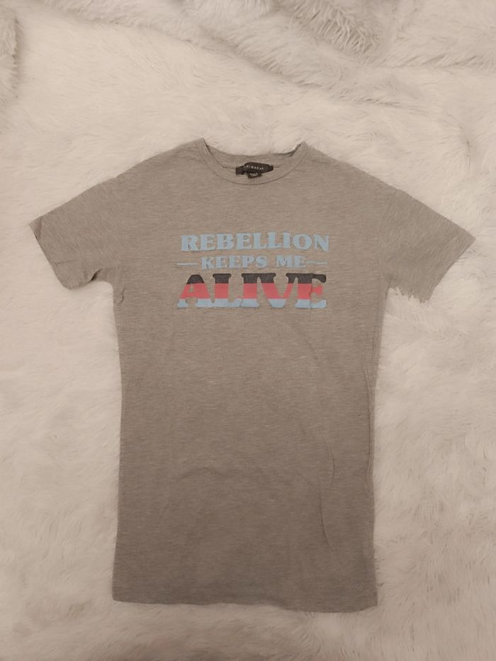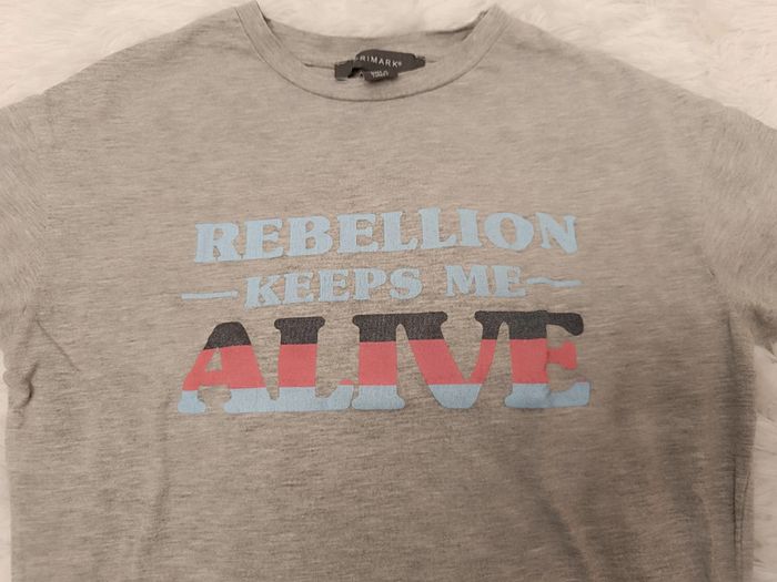 T-shirt long " Rebellion keeps me alive " T. 32 Primark