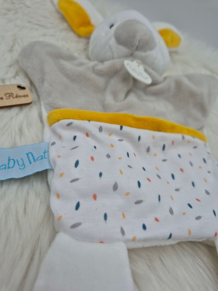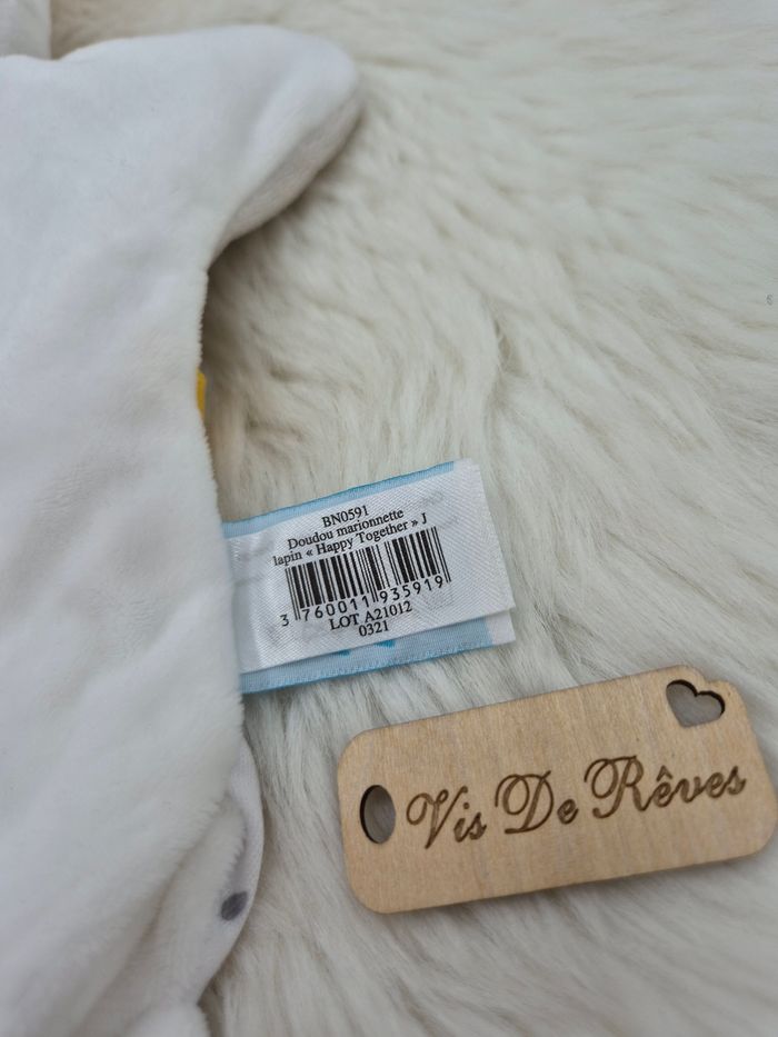 Doudou Marionnette Lapin Blanc jaune  "Happy Together" Baby Nat Bn0591 - photo numéro 5