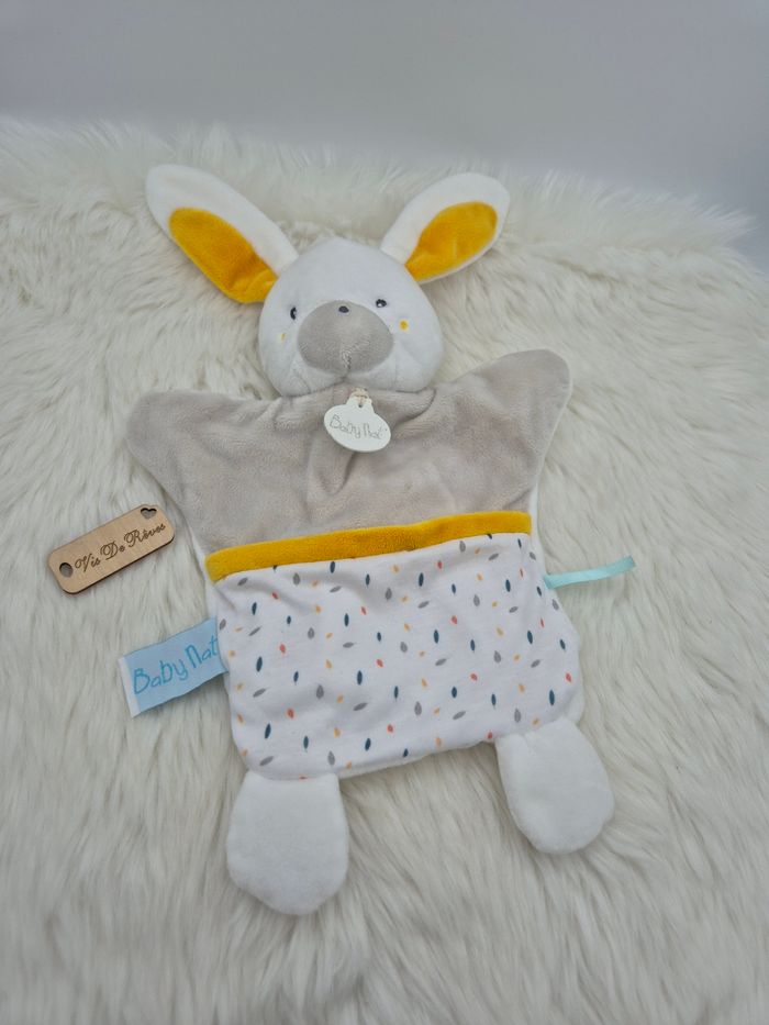 Doudou Marionnette Lapin Blanc jaune  "Happy Together" Baby Nat Bn0591 - photo numéro 1