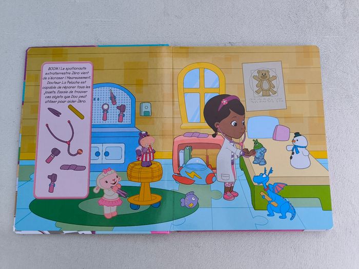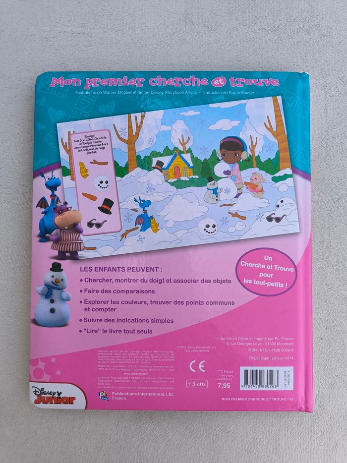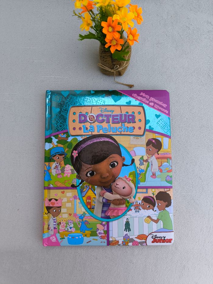 Livre mon premier cherche et trouve Docteur La peluche, n°10 Éditions Disney Junior, Pikids • Pages cartonnées • Intérieur du livre en très bon état • Coins abîmés En très bon état #evelyne_livres