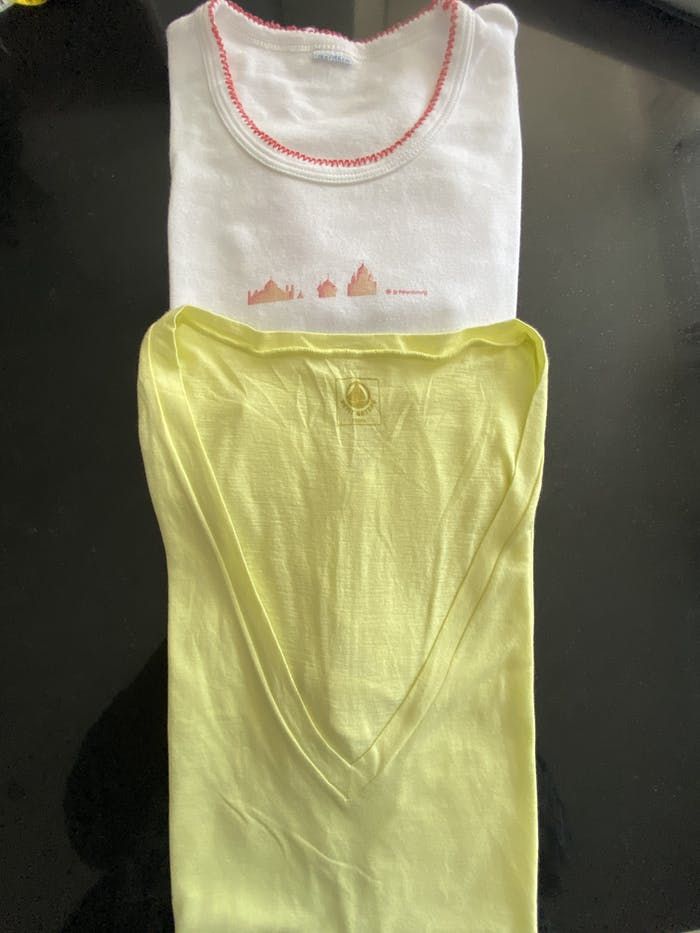 Lot comprenant un maillot de corps plus un T-shirt petit bateau Uniquement le maillot de corps a été lavé il a servi pour un shooting photo article neuf14 ans 100% coton degrif