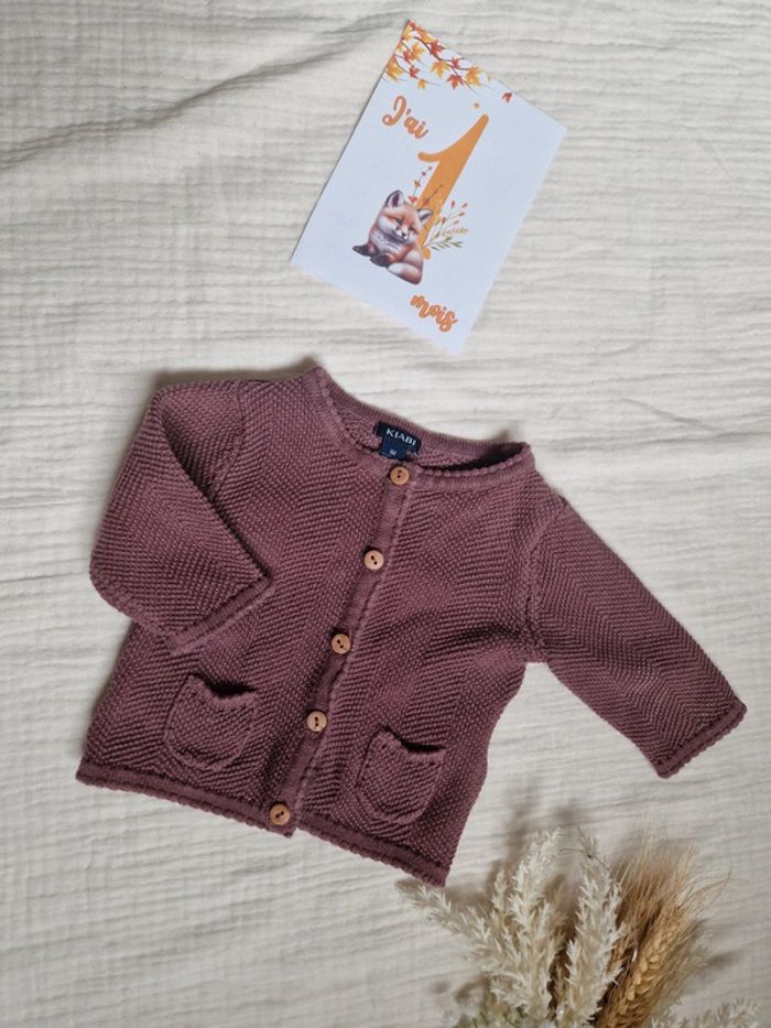 🌸 Dressing trié par taille et type d’article ! Retrouvez ici tous les articles en 1 mois : #bebe1moisjh49 🌸 Gilet prune boutons imitation bois