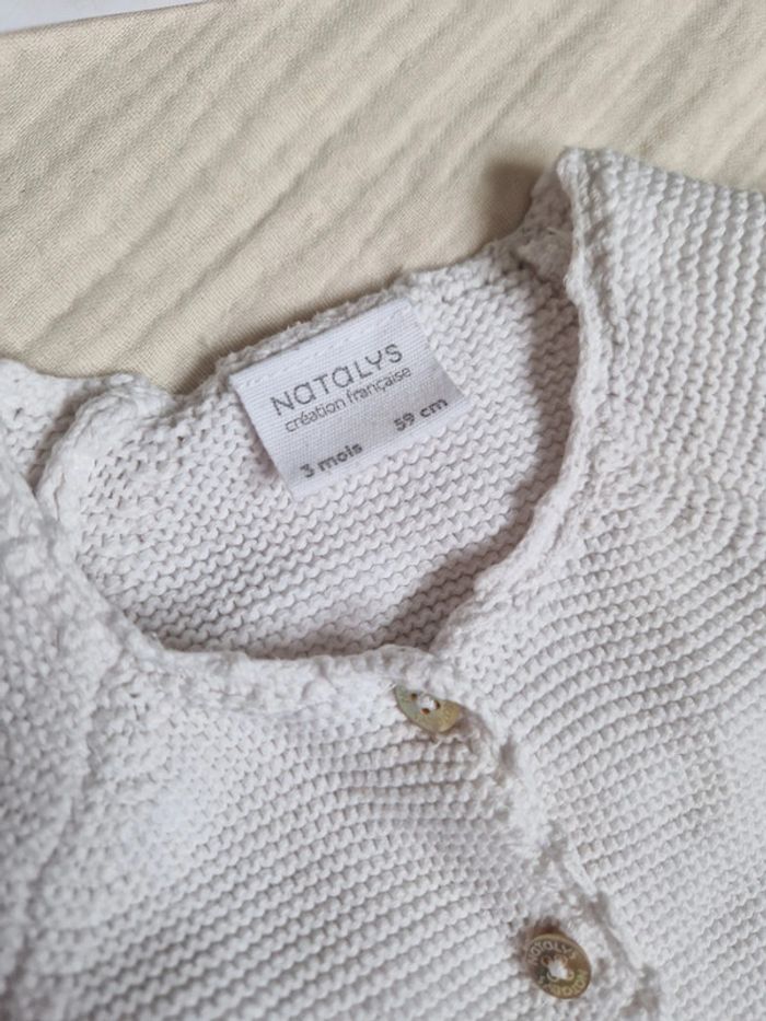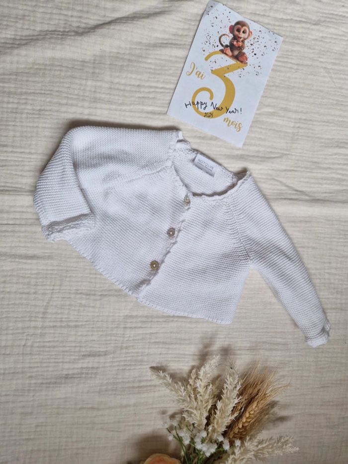 🌸 Dressing trié par taille et type d’article ! Retrouvez ici tous les articles en 3 mois : #bebe3moisjh49 🌸 Petit gilet court blanc en très bon état