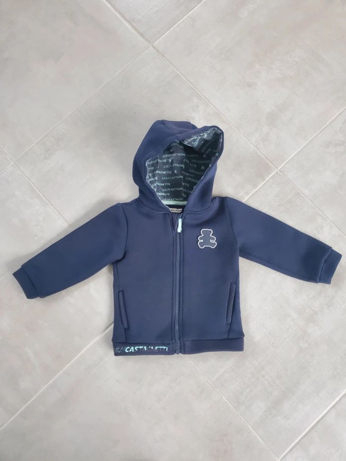 Vends veste zippé à capuche taille 24 mois Marque lulu castagnette L'écriture s'est un peu effacée au fil des lavages mais pas de trous ni de taches Maison non fumeur et sans animaux N'hésitez pas à regarder mes autres articles