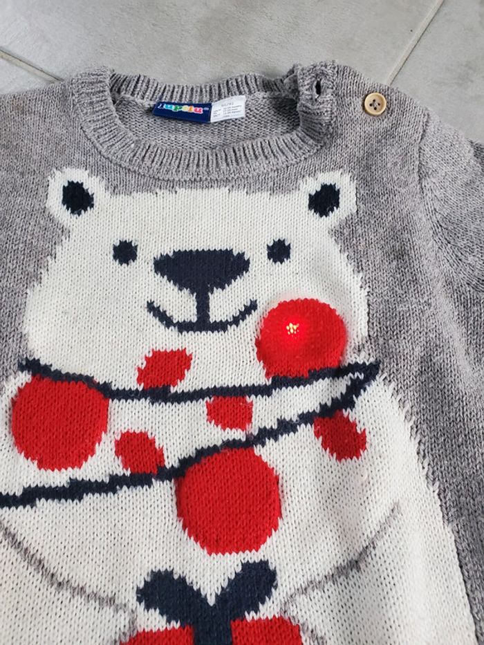 Vends pull de noël marque lupilu Taille 12/24 mois Avec 3 lumières tactiles Sans trou ni tâches maison non fumeur et sans animaux N'hésitez pas à regarder mes autres articles