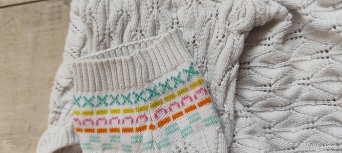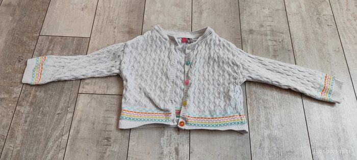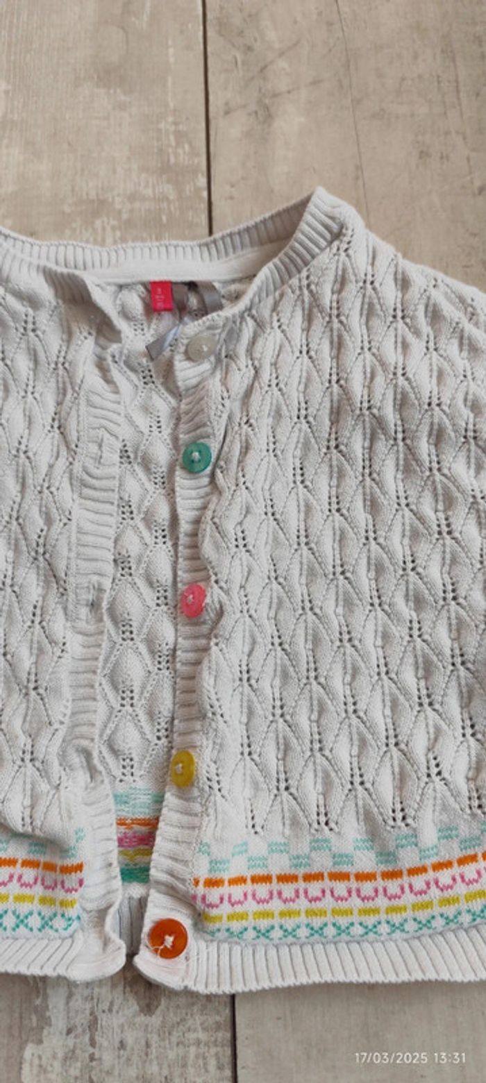 Je vends ce gilet blanc avec des touches de couleur, des boutons colorés de différentes couleurs, de la marque Orchestra et un taille 3 ans. #Estelle2150_enfant_3ans