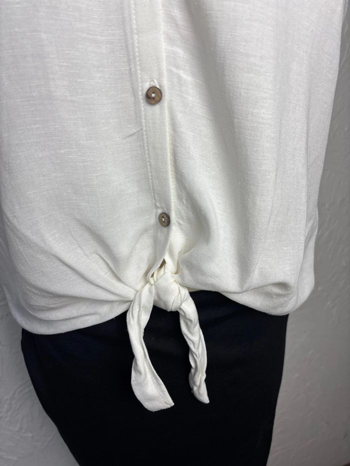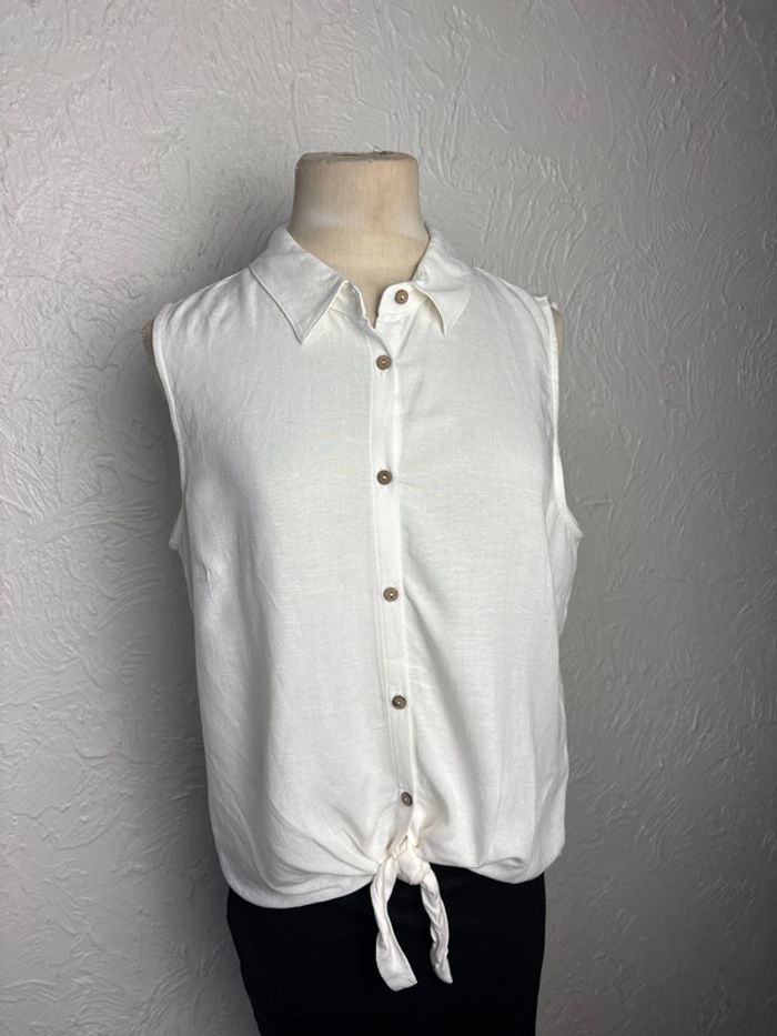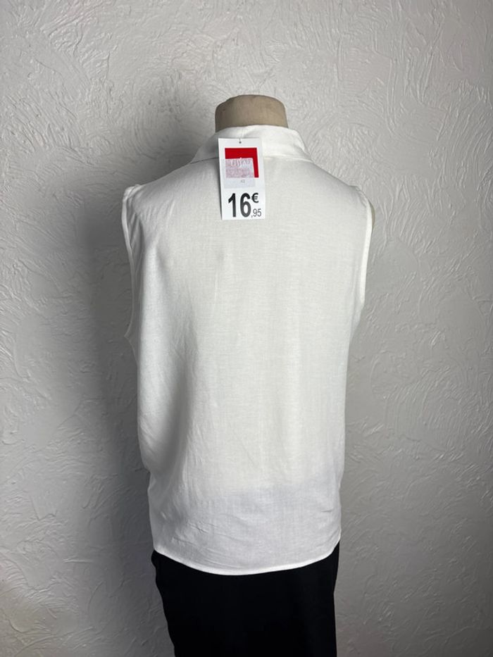 Chemisier sans manches écru taille 42 effet lin #chemisier #chemisesansmanches #taille42femme #blusaSinManga #camicettaSenzaManiche #mouwlozeBlouse #blusaSemMangas