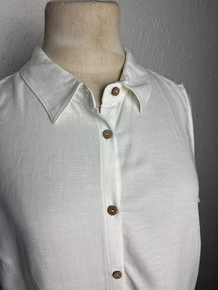 Chemisier sans manches écru taille 42 effet lin - photo numéro 2