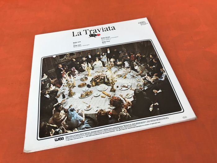 Album Vinyle (2x33 tours) La Traviata Bande originale du film Giuseppe Verdi Metropolitan Opera Orchestra and Chorus (1983) WEA 250072 A Act 1 B Act 2, Scene 1 (First Part) C1 Act 2, Scene 1 (Conclusion) C2 Act 2, Scene 2 D Act 3