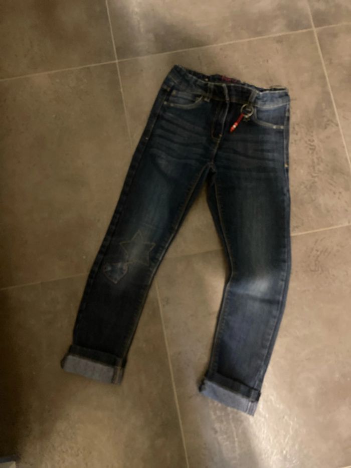6/7 ans - jeans bleu marine avec motifs coeurs étoiles - photo numéro 4