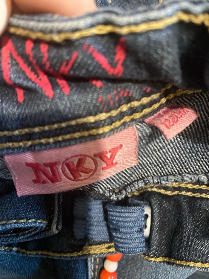 Taille inscrite 7 ans mais taille comme un 6 ans - jeans bleu brut avec motifs. Super joli et original marque : NKY