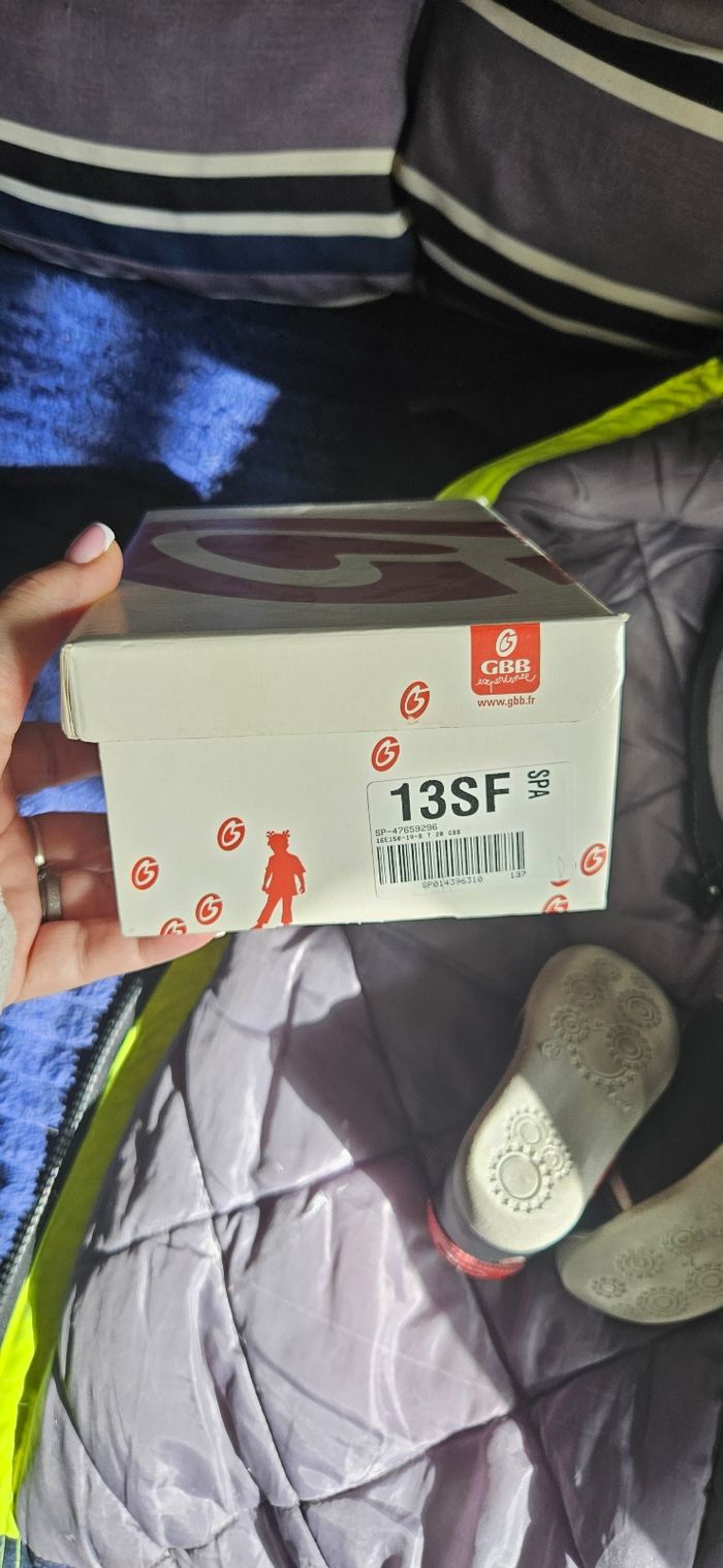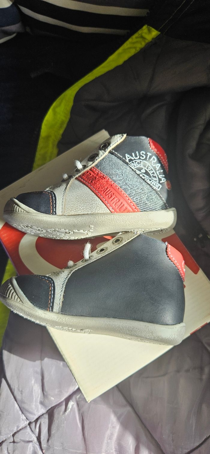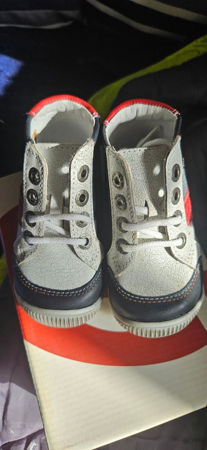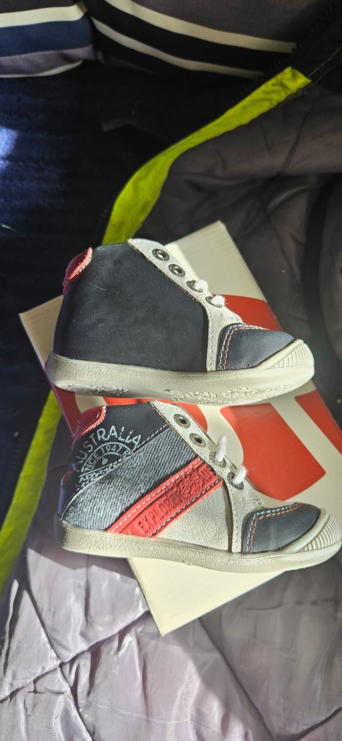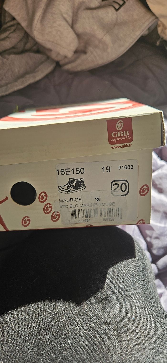 Vends chaussure pointure 20 enfant ,jamais porter, bleu marine , blanche et rouge , aspect usure