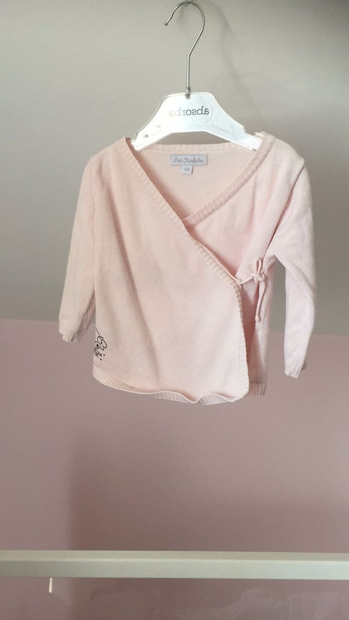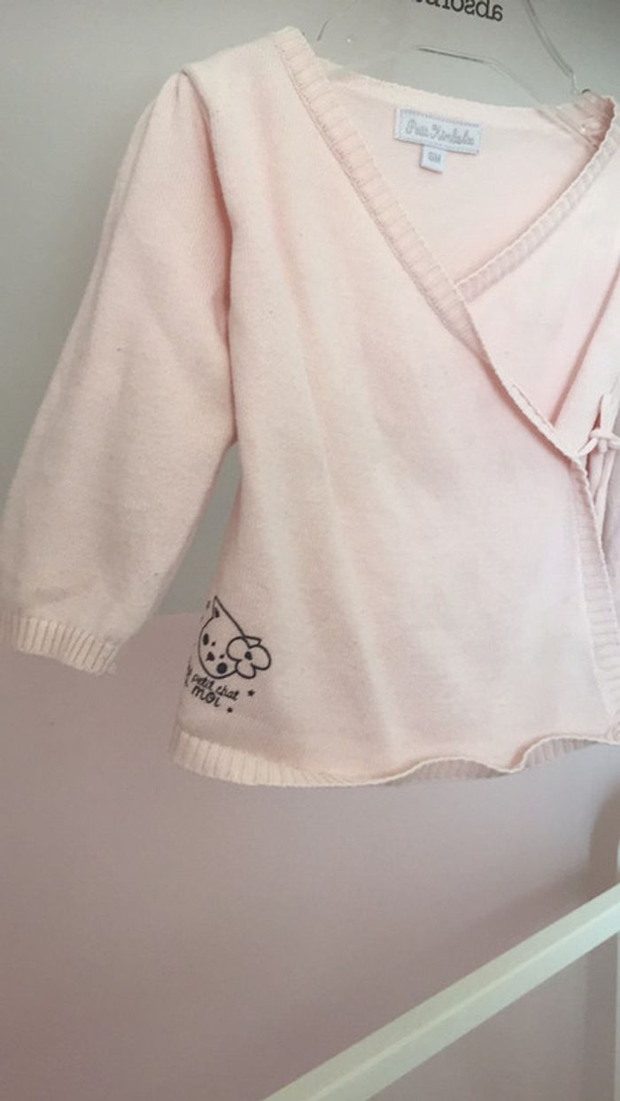 Gilet cache coeur 6 mois rose pale coton fin - photo numéro 3