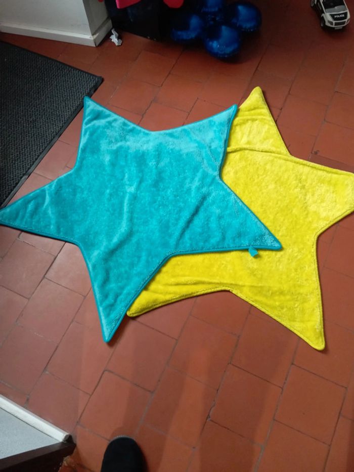1 bleu et 1 vert anis, lavable en machine,le bleu a un petit défaut ( voir photo)
