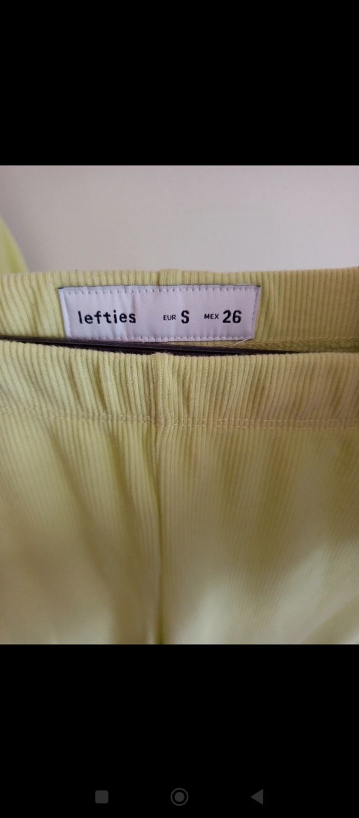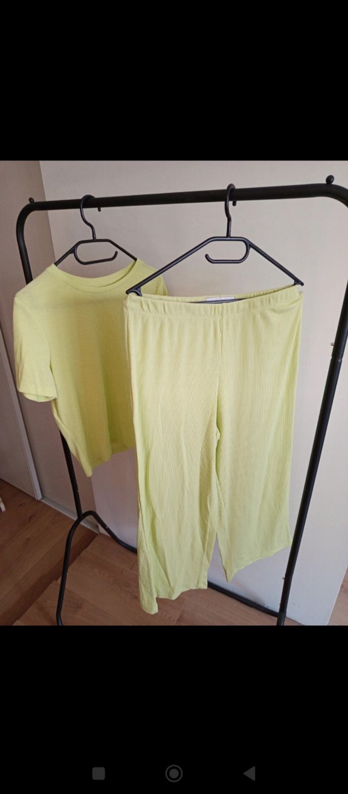 Ensemble haut court et pantalon 3/4, vert "fluo", porté une fois