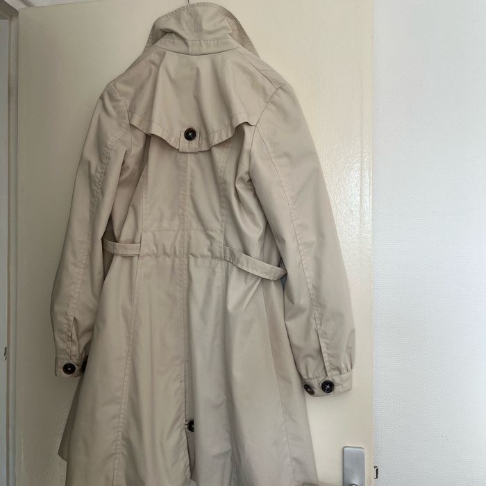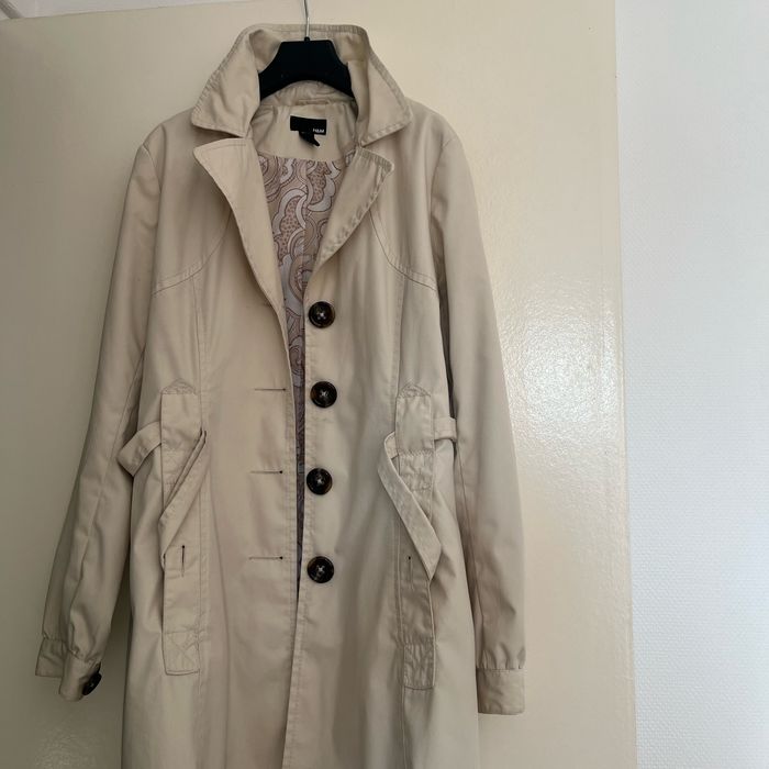 Trench beige court avec ceinture intégré , légèrement cintré , marque HM , taille 38,