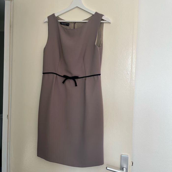 Robe en crêpe couleur beige avec ceinture intégrée, , fermeture incrustée au dos