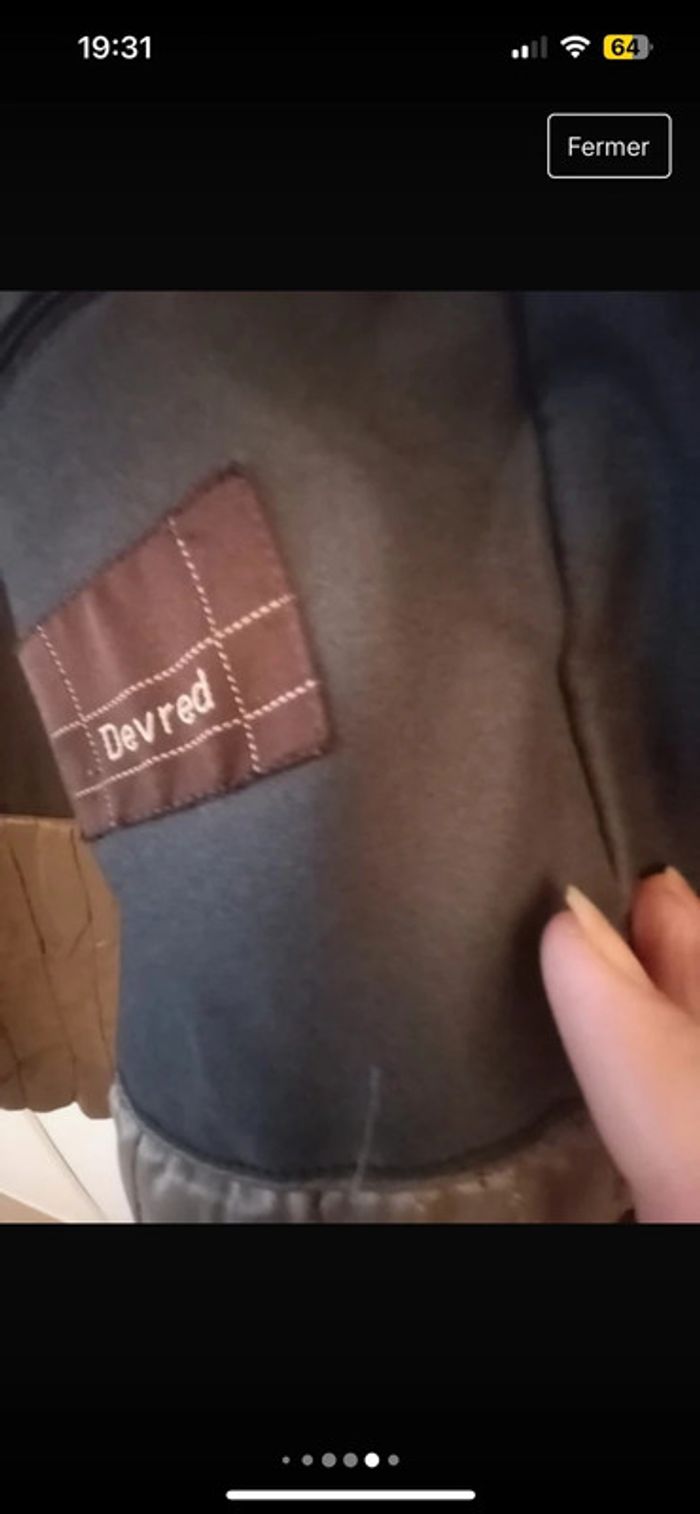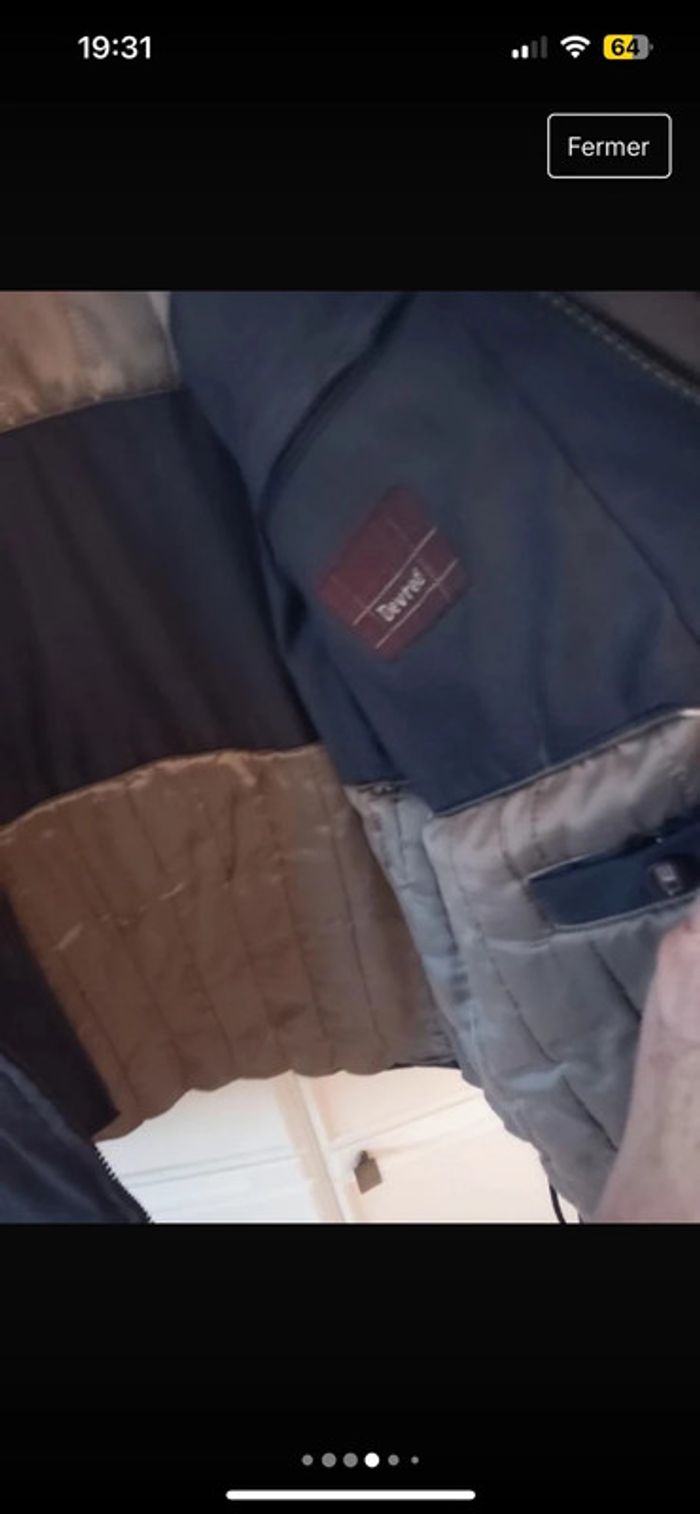 Manteau bleu avec 2 poches intérieures Manque la fermeture (voir photo) mais c’est encore possible de l’ouvrir sans soucis Taille 50-52 Devred #amandine0704hommeXXL