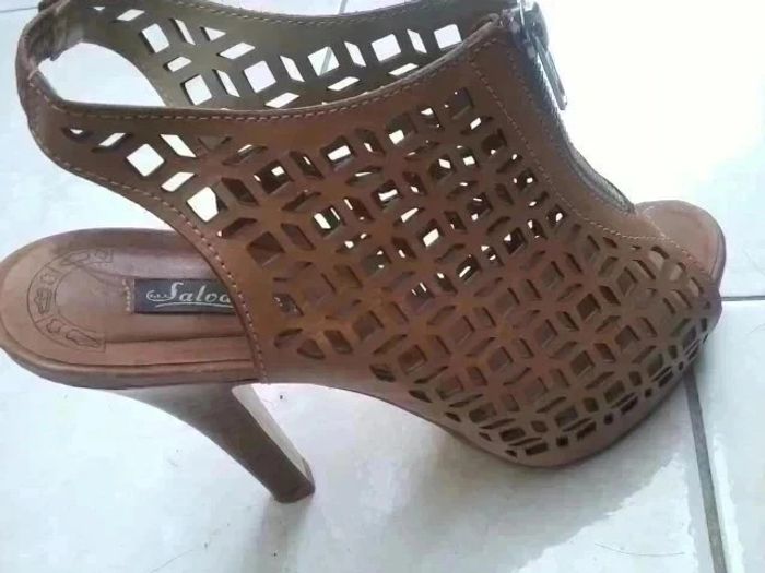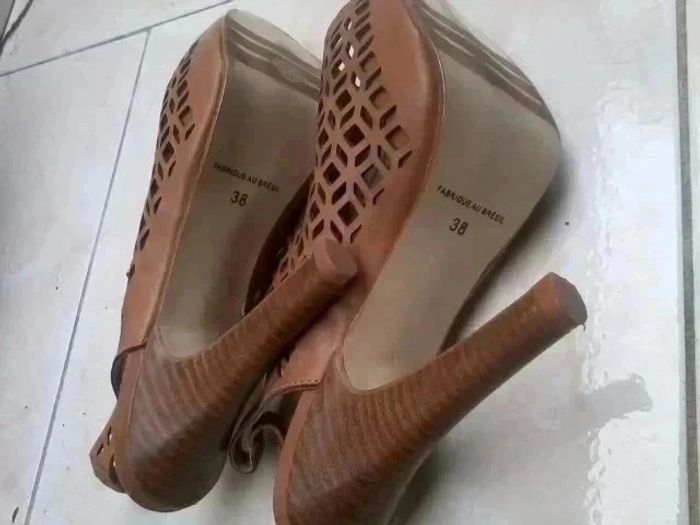 vend paire de chaussures ajourées couleur marron pointure 38 cuir marque salvatore talons env 12 cm avec des vraies fermeture par devant