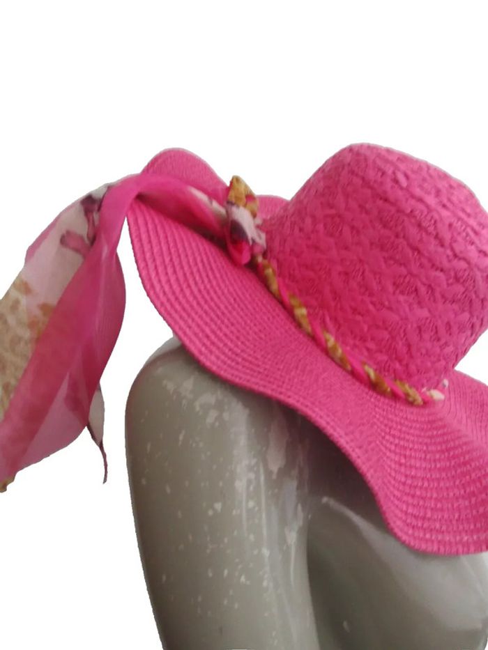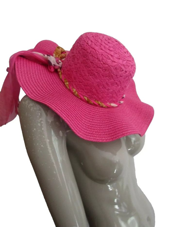chapeau capeline d'été en paille de papier pas de taille indiquée mais convient a une taille 56/58 envoi rapide 1 jour maxi après l'achat achats multiples = frais de port réduits