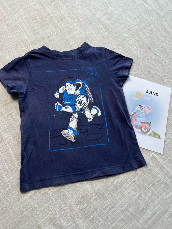 Joli t-shirt à manches courtes de la marque Disney Toy story Taille 3 ans Légères craquelures de Buzz (photo) Groupez vos achats pour profiter des remises activées sur les lots et réduire vos frais de port #chrisbc17garcon3ans