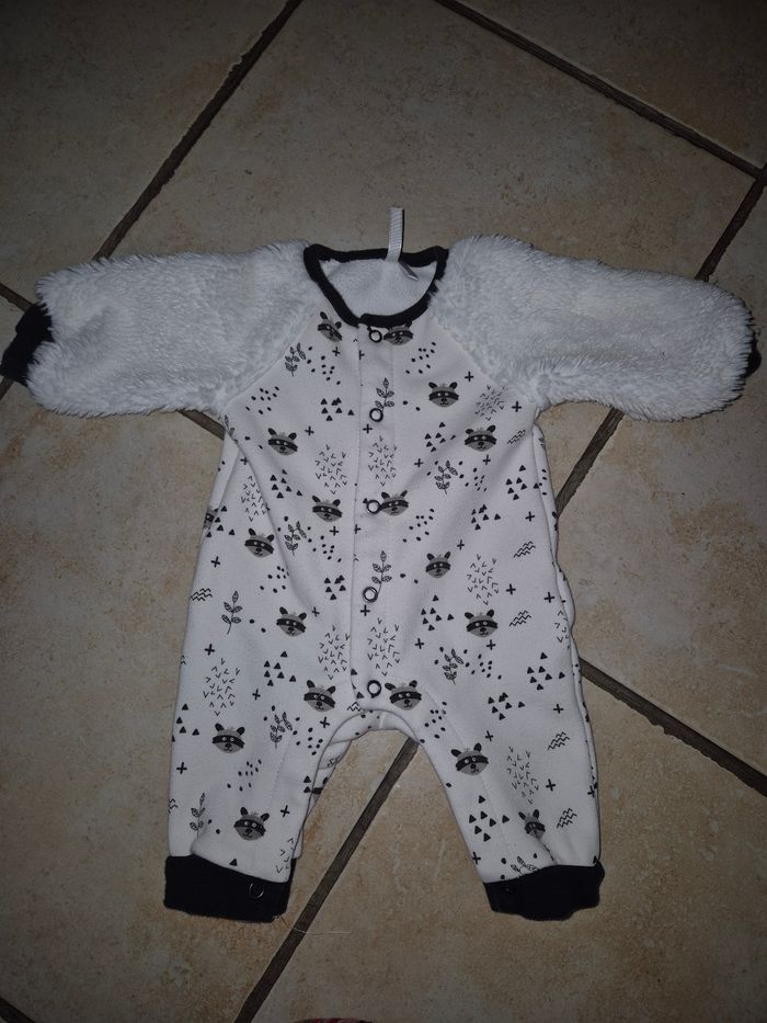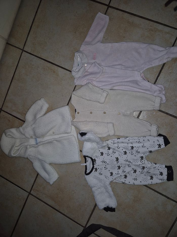 Co lot contient : - 1 pyjama raton laveur manche en fausse fourrure - 1 pyjama boss - 1 tenue en laine - 1 veste en laine Le tout est en excellent état aucune tâche, trou ou accro