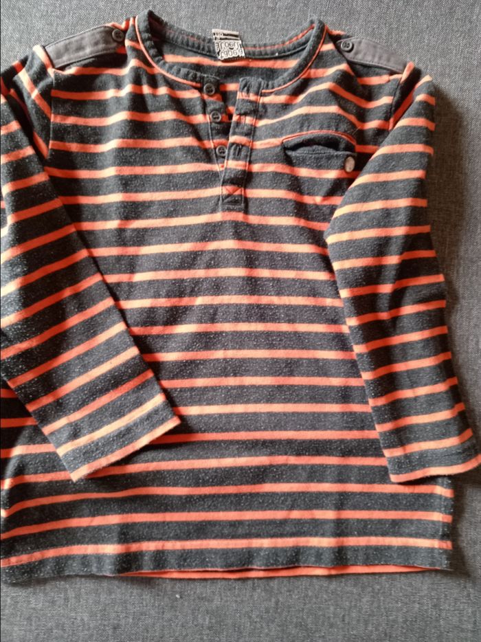 Manches longues 1 bleu Gemo 1 marine tape à l'œil 1 noir et orange rayé tape à l'œil