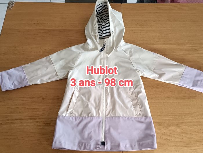 ⚠️Veuillez consulter mes autres articles, je suis en train de m’en débarrasser⚠️ État : état satisfaisant : des tâches sur le ciré voir photos, imperméabilité intacte Marque : Hublot mode marine Taille : 3 ans - 98 cm Couleur : tricolore blanc, violet et argenté Genre : fille Coupe légèrement cintrée Ciré enfant zippé à capuche réglable Fermeture à glissière pour se protéger du vent et de la pluie. Doublé de jersey marinière aux manches et à la capuche Ciré en enduction PVC et sa capuche Lot possible avec mes autres annonces. Envoi rapide (Mondial Relay) et soigné Ouvert à la négociation #hublot #hublotmodemarine #hublotmode #hublotmarine #hublotfille #hublotfille3ans #hublotmodemarine3ans #ciré #cirehublot #cirehublotfille #cirehublot3ans #imperméable #impermeablefille #impermablefille3ans #imperméablefille3ans #fille #fille3ans #3ans #3ansfille #3ans94cm #94cm #94cmfille #jersey #capuche #cirécapuche #seb310105 #cirédoublé #doublé #impermeabledoublé