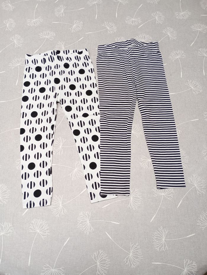 Lot de 2 leggings en taille 86/92. Pas de marque. Très peu porté. Très bon état. Bac 28
