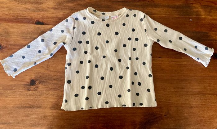 T-shirt manches longues Rose pale à pois noir Taille 6/9 mois