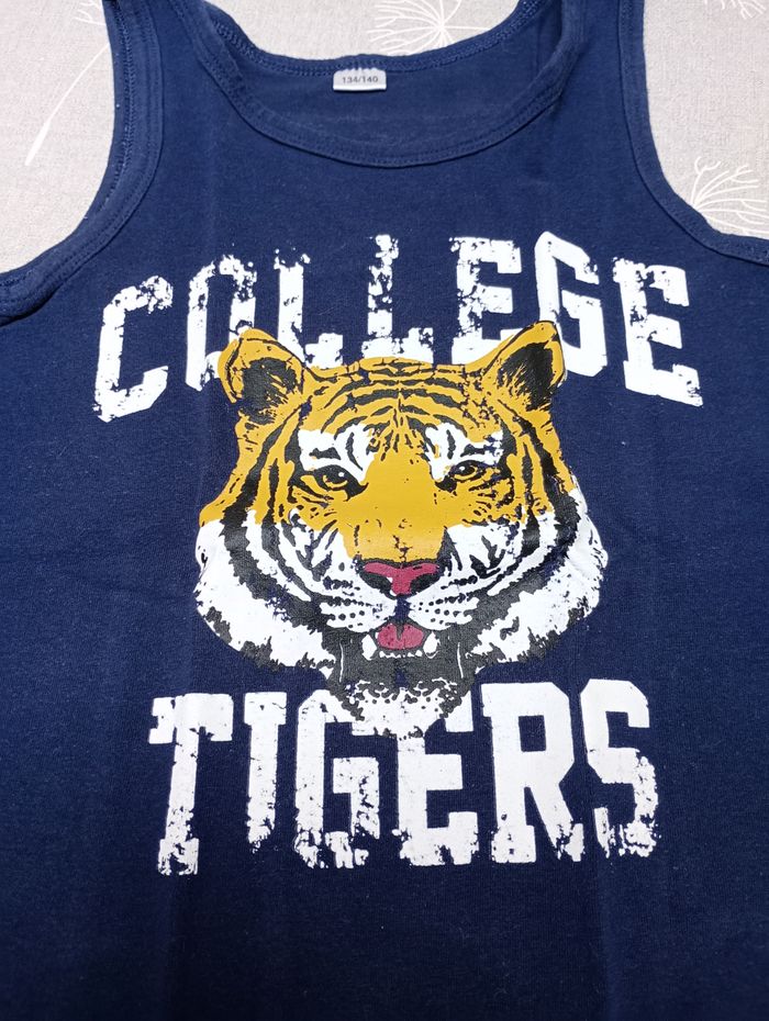 Débardeur bleu marine avec tigre. Taille : 134/140. Pas de marque. Très bon état. Bac 28