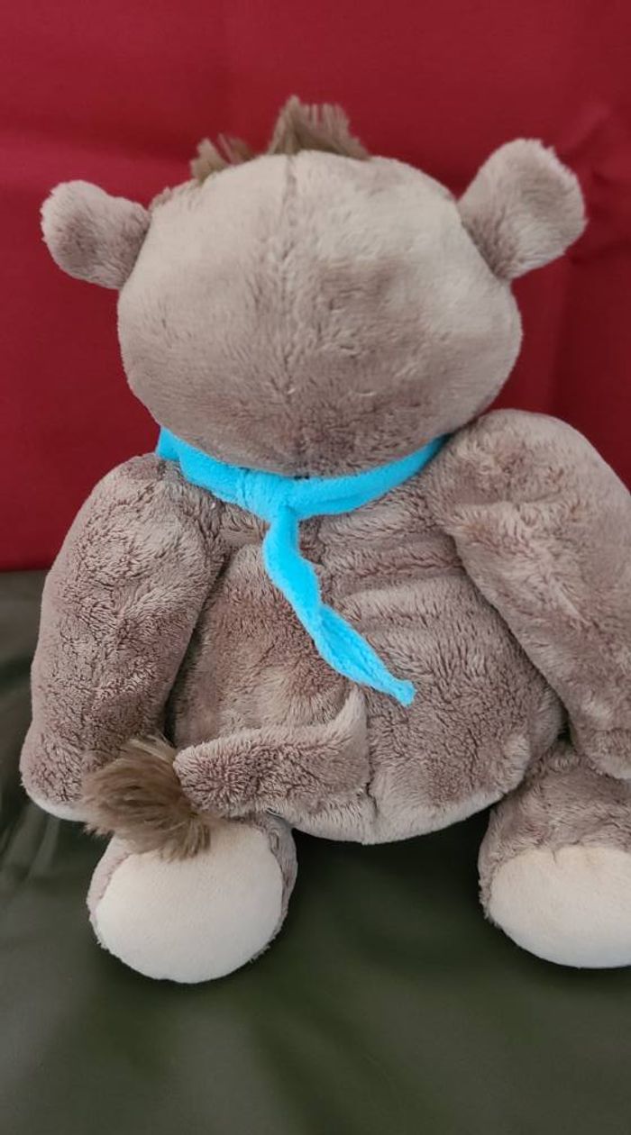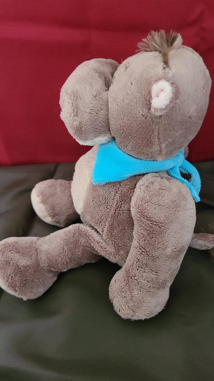 Doudou peluche Hippopotame marron gris beige foulard bleu 30 cm Althans Club - photo numéro 5