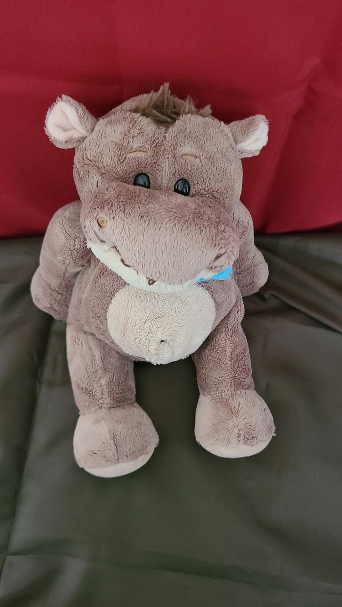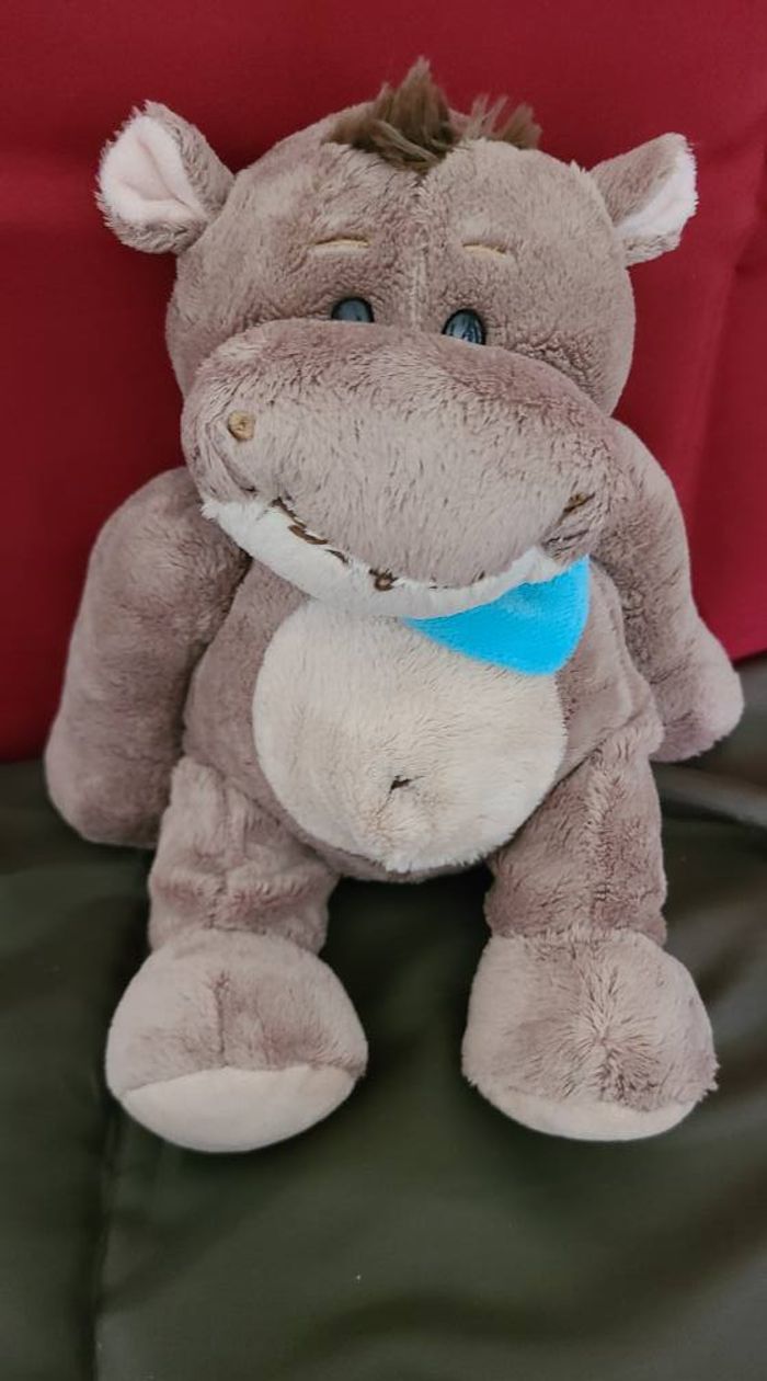 Doudou peluche Hippopotame marron gris beige foulard bleu 30 cm Althans Club - photo numéro 1