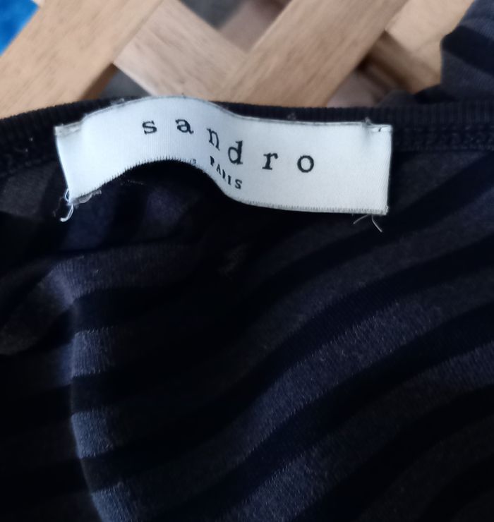 Débardeur noir Sandro Rayé noir et gris foncé Forme ample Fines bretelles Viscose / coton / polyamide Taille 2 #T36_imoddeco