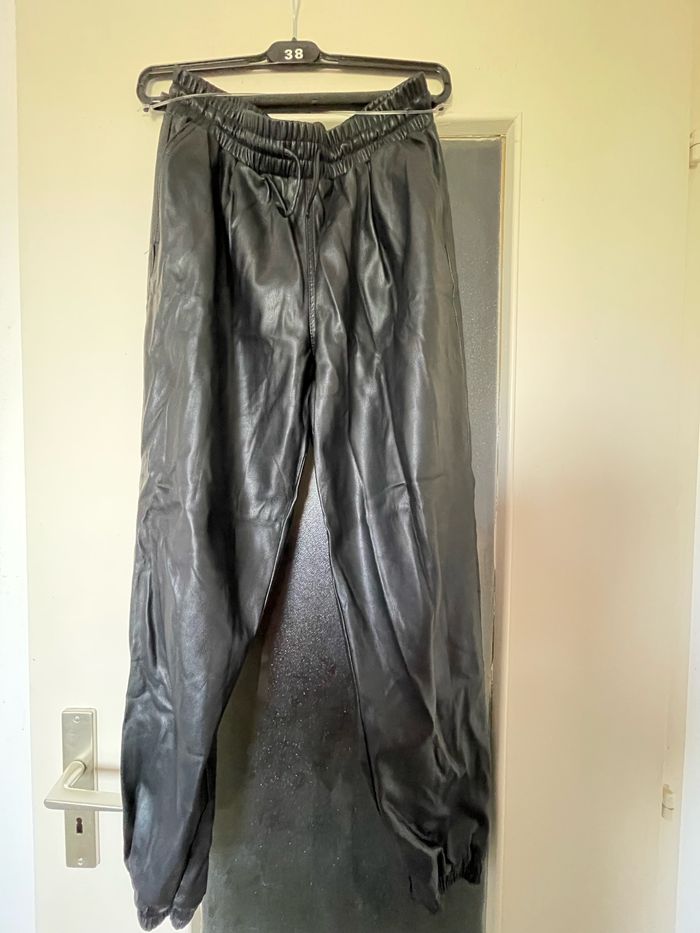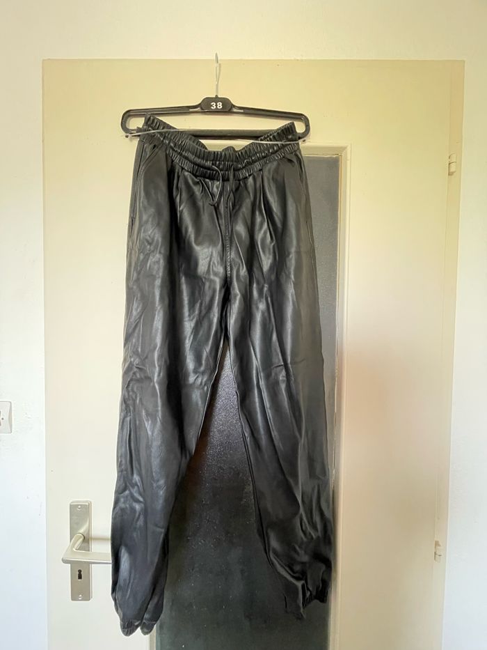 Une coupe jogging tendance pour vos looks de la saison. - Pantalon en simili - Coupe jogging - Taille élastiquée - 2 poches devant - C hevilles élastiquées