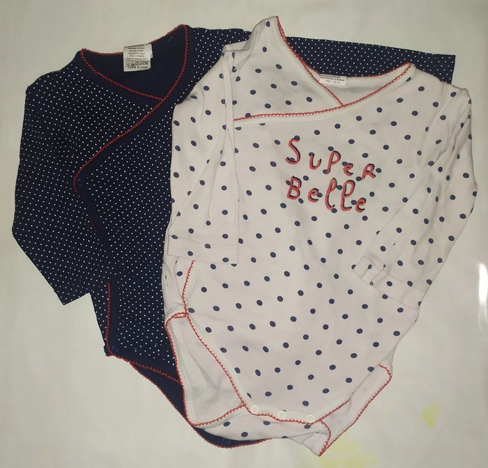 Bodies manches longue , fermeture a pression sur le coté ,marque Tissaia 6 mois .la couture s'est décousus sous le bras a été recousus .