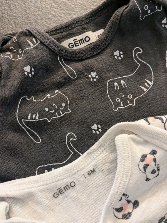 Lot de deux body pour bébé de taille six mois (6). Marque Gemo.