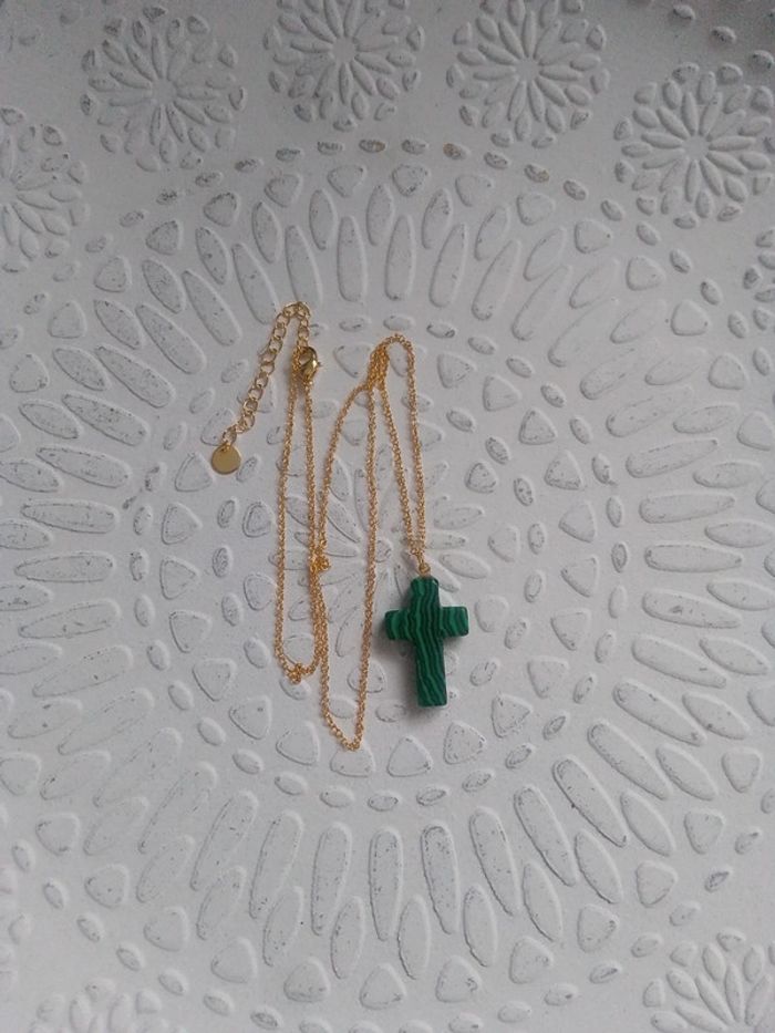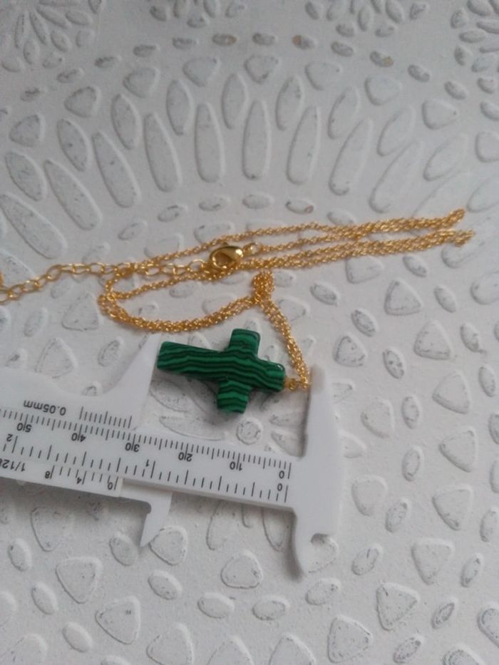 Collier croix vert malachite - photo numéro 2