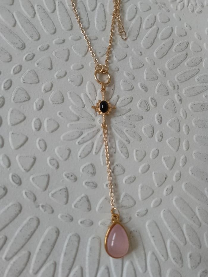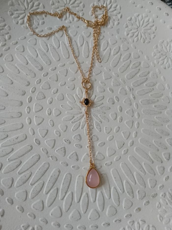 Chaîne en acier doré 45 cm plus une chaînette d'extension Pierre naturelle de lithothérapie Voir aussi mortelle Adèle Ariol lithotherapie oracle ésotérisme bohème pierre naturelle sautoir lots