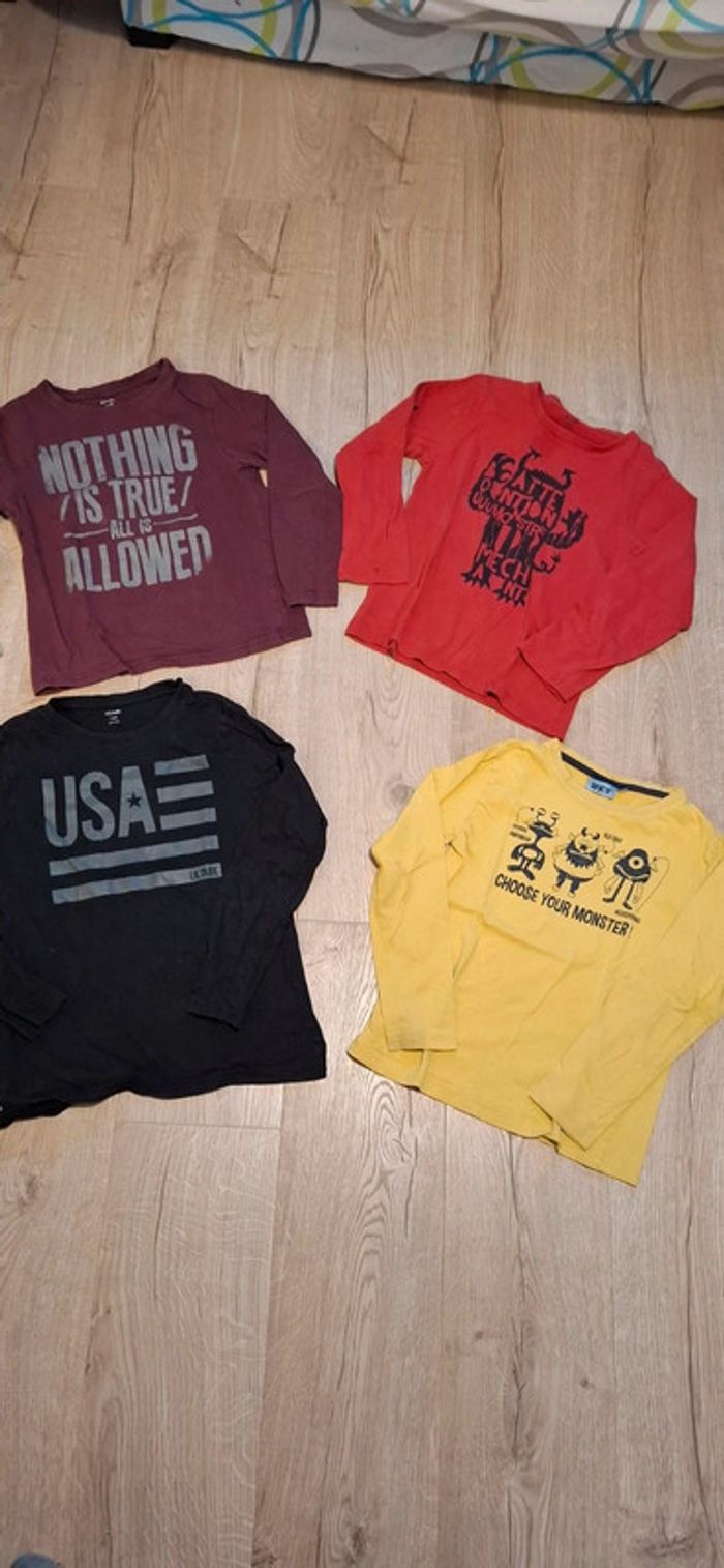 #loluxiagarcon10ans Lot de 4 Tee-shirts manches longues en coton : - 1 noir TBE - 1 jaune BE car petites taches discretes sur manches et tout petit trou manche (antivol) cf photos - 1 rouge BE car petites taches discretes sur 1 manche et encolure et tout petit trou manche (antivol) cf photos - 1 bordeau BE car auréoles plus claires sur épaule droite, cf photo A noter, les t shirt sont marqués, ne gêne en rien l’usage