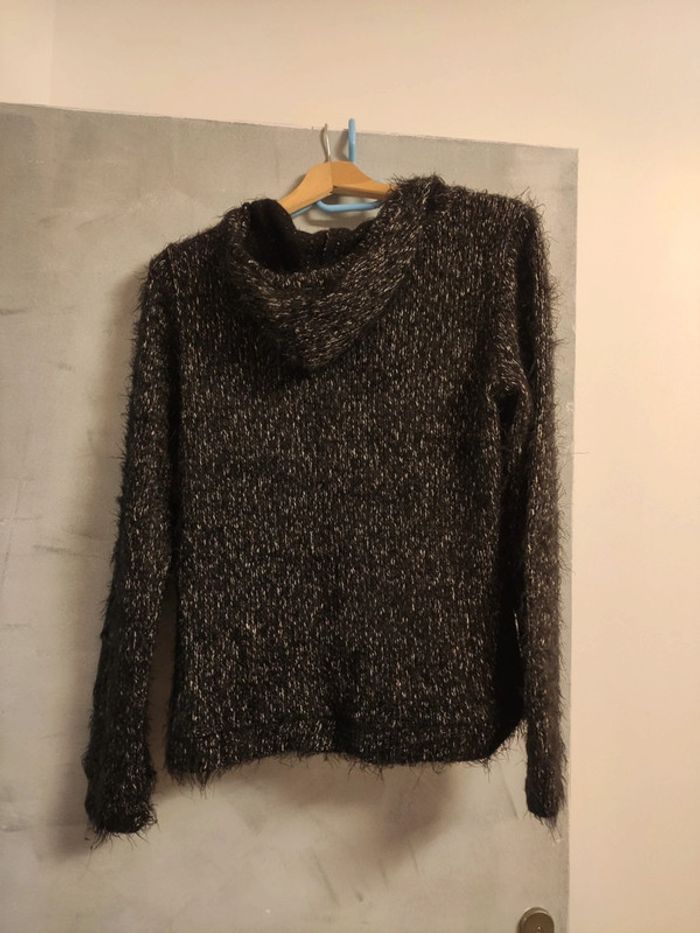 Pull à capuche très bon état Molly Bracken noir moucheté blanc à pompon