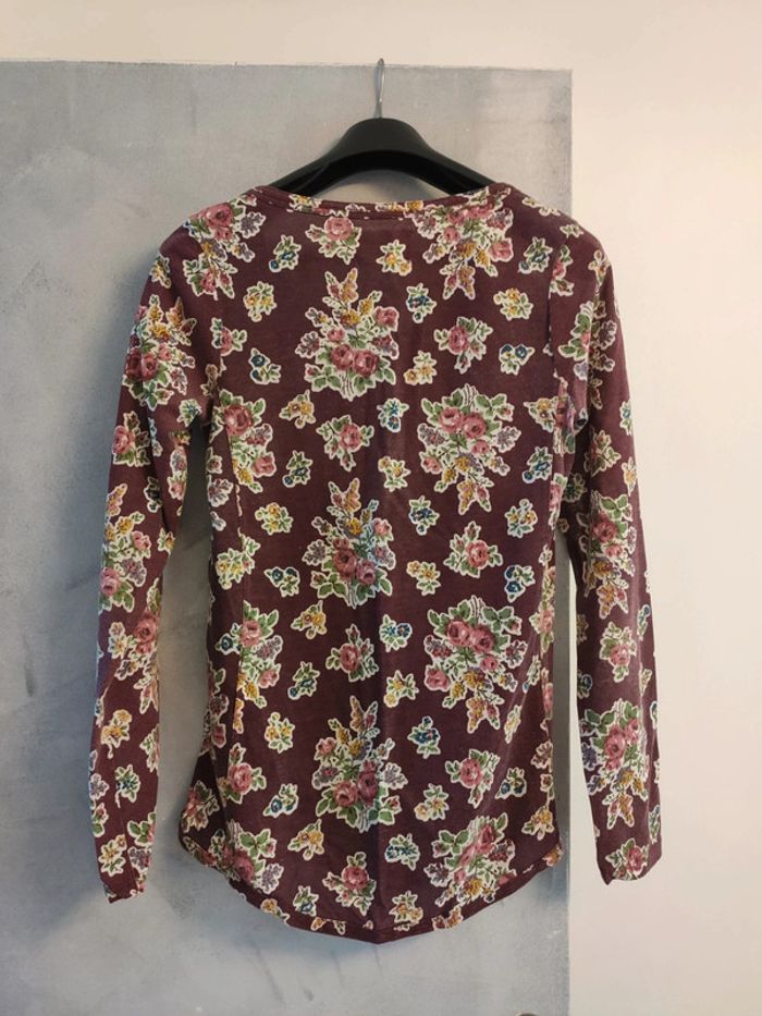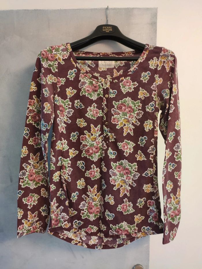 Blouse couleur framboise à motif fleurs assez cintrée de chez Zara en très bon état