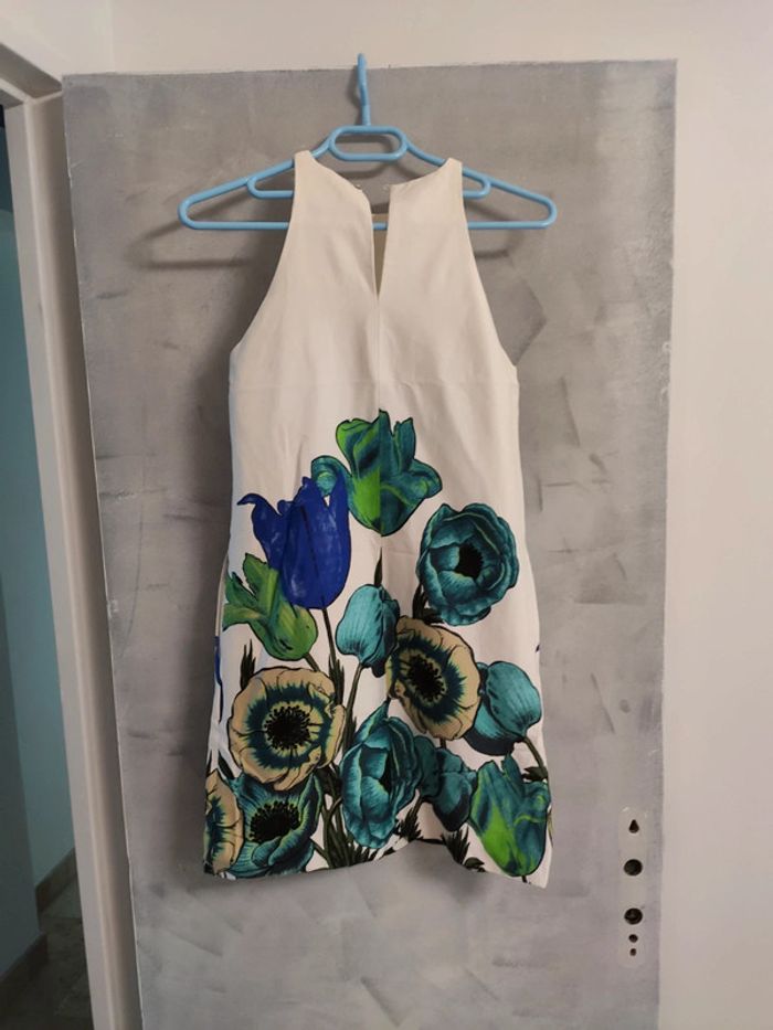 Robe Zara blanche de soirée avec dessin à fleurs , très bon état , très bien taillé taille XS/S