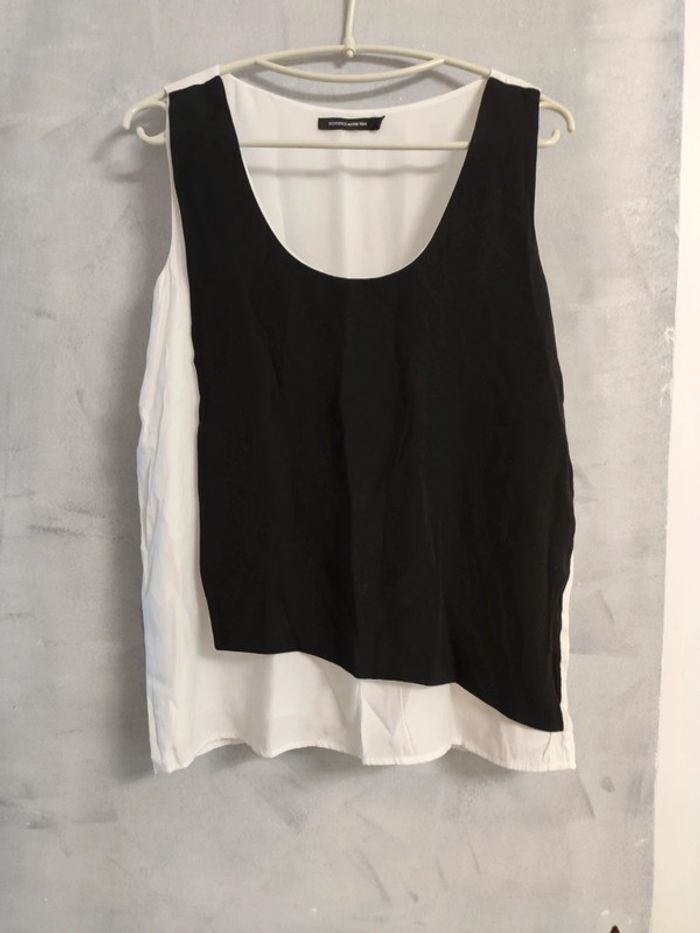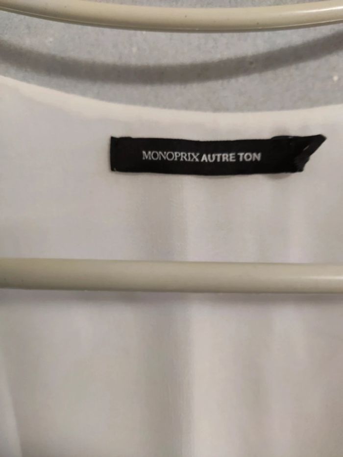 T-shirt blanc avec doublure noire taille 40 de chez Monoprix , en très bon état comme neuf très peu porté, je trouve qu'il taille plus comme un 38 que comme un 40