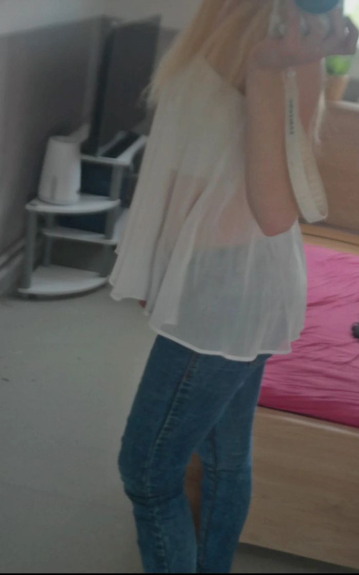 #chapitifemme36 Le plus beau crop top que je n'ai jamais vu 🥰 malheureusement pas utilisé à temps il ne me va plus avec ma grossesse les photos dates de l'essayage .. 😬 Une bande au niveau de la poitrine et un voile par dessus Parfait pour briller sur la plage ou mettre son ventre en avant :) Neuf et étiquette On voit le ventre mais pas trop avec le voilage 😊 de qualité rare London. Acheté à topshop à Londres Valeur neuf sur l'étiquette 35$
