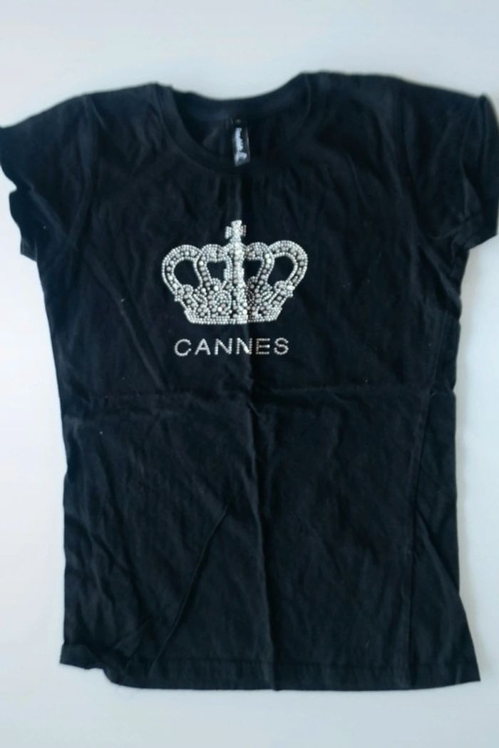 Tshirt noir avec inscription cannes et une couronne Taille S TBE il ne manque aucun diamant #chapitifemme36 #vacances #cotedazur #souvenirdevacances #cadeaux #cannes #soleil #couronne #reinedangleterre #diamantsneuf