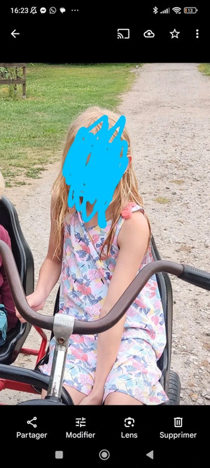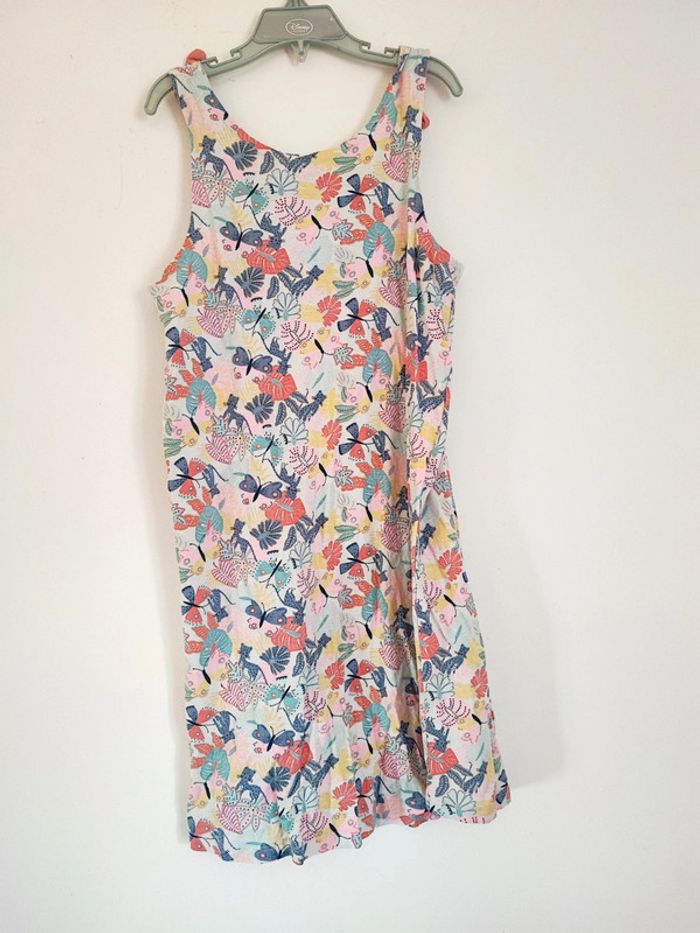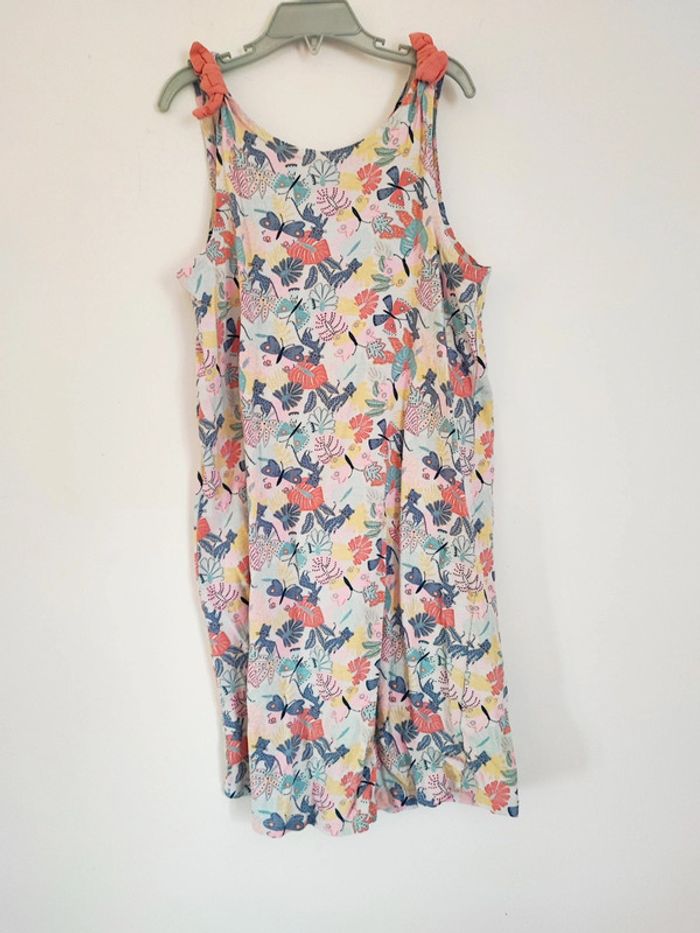 #chapiti12ansfille Robe en bon état avec des petits noeuds bien colorée avec des motifs tropicaux petits tigres feuilles ou papillons