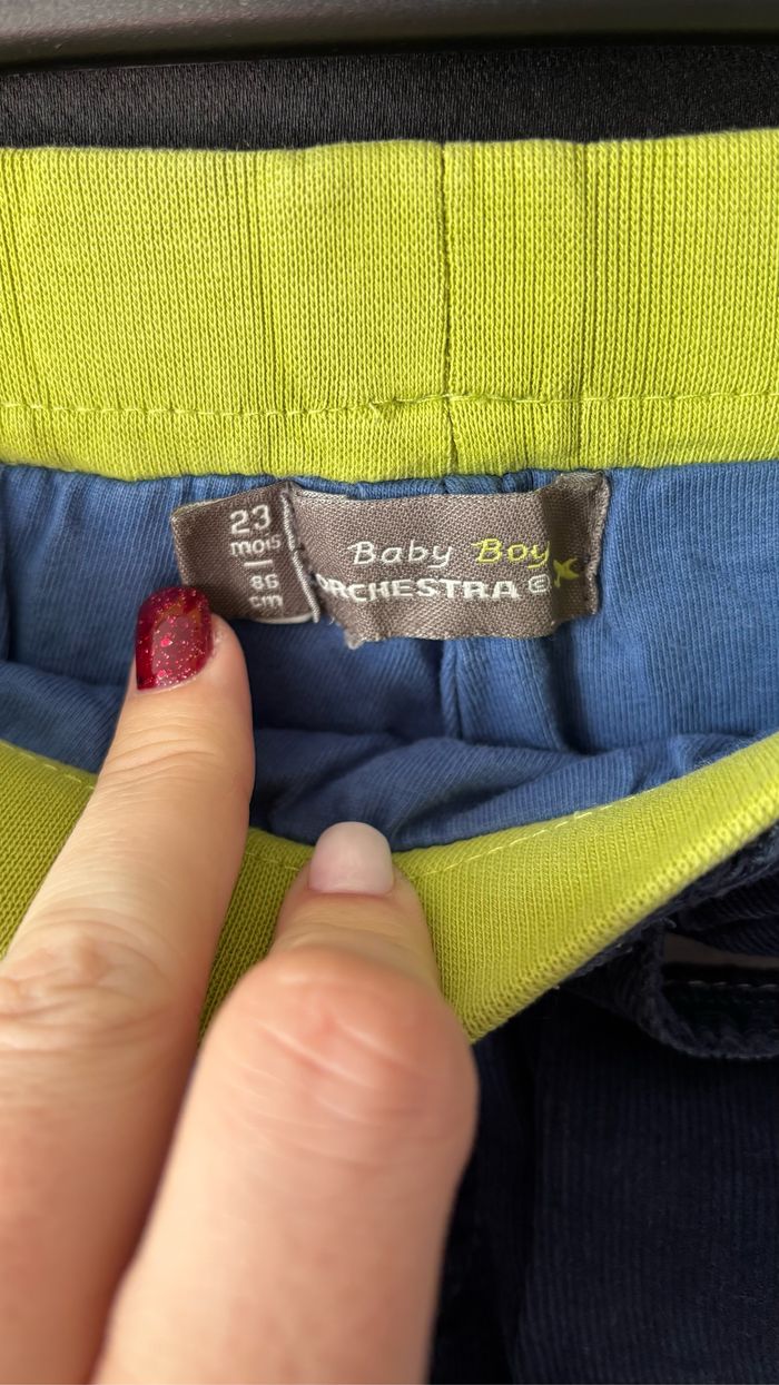 Taille élastique Couleur bleu marine et ceinture vert flou Taille 23 mois