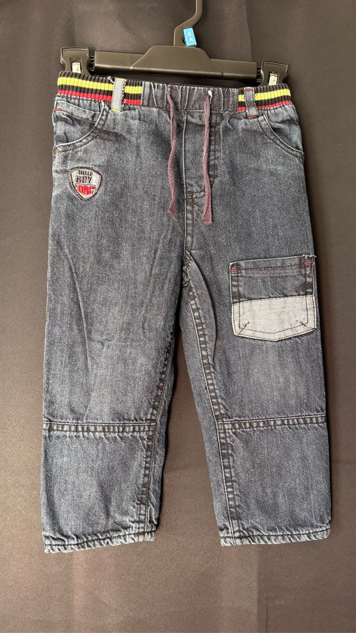 Taille élastique Couleur gris et ceinture a rayures vert, rouge et noir Taille 23 mois