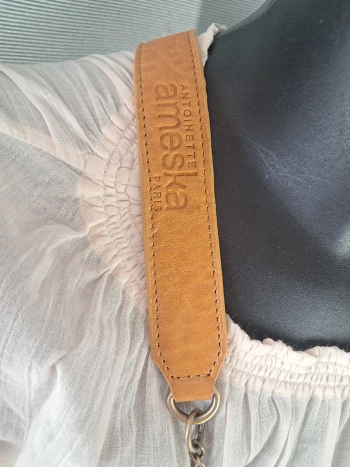 Antoinette Ameska très belle pochette bandoulière en cuir à porter petit ou grand, mais plus joli petit car patine légèrement décolorée en grande ouverture Dimensions en photos Dans la même categorie cliquez ici: #collectionsephemeresmaroquinerie D'autres articles en ligne, possibilité d'achat en lot Pas de réservation